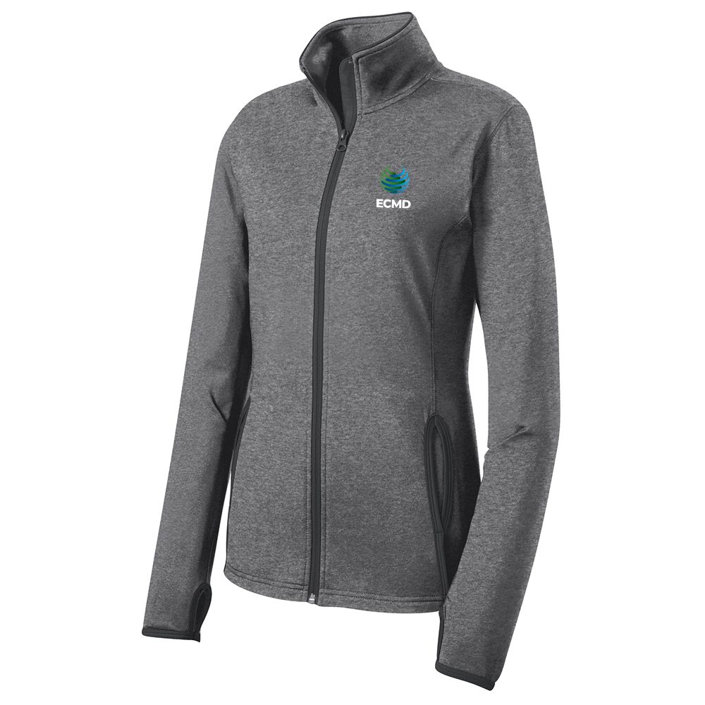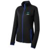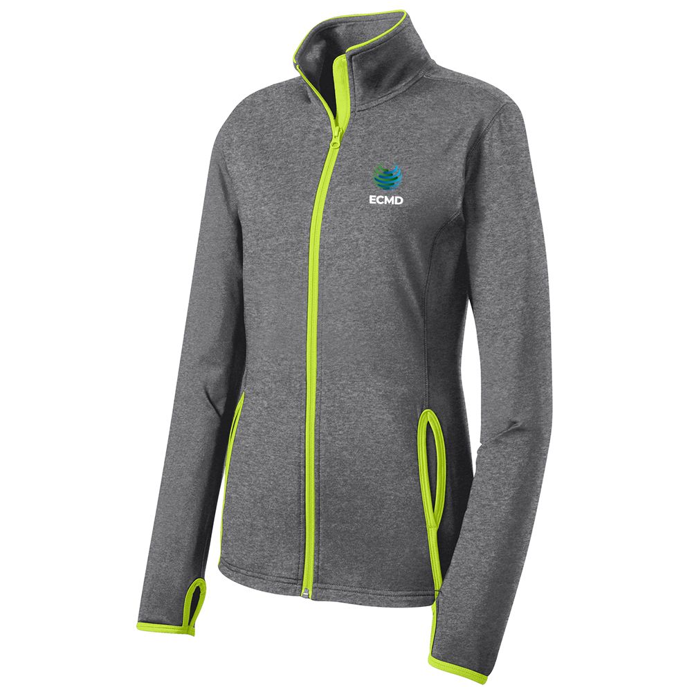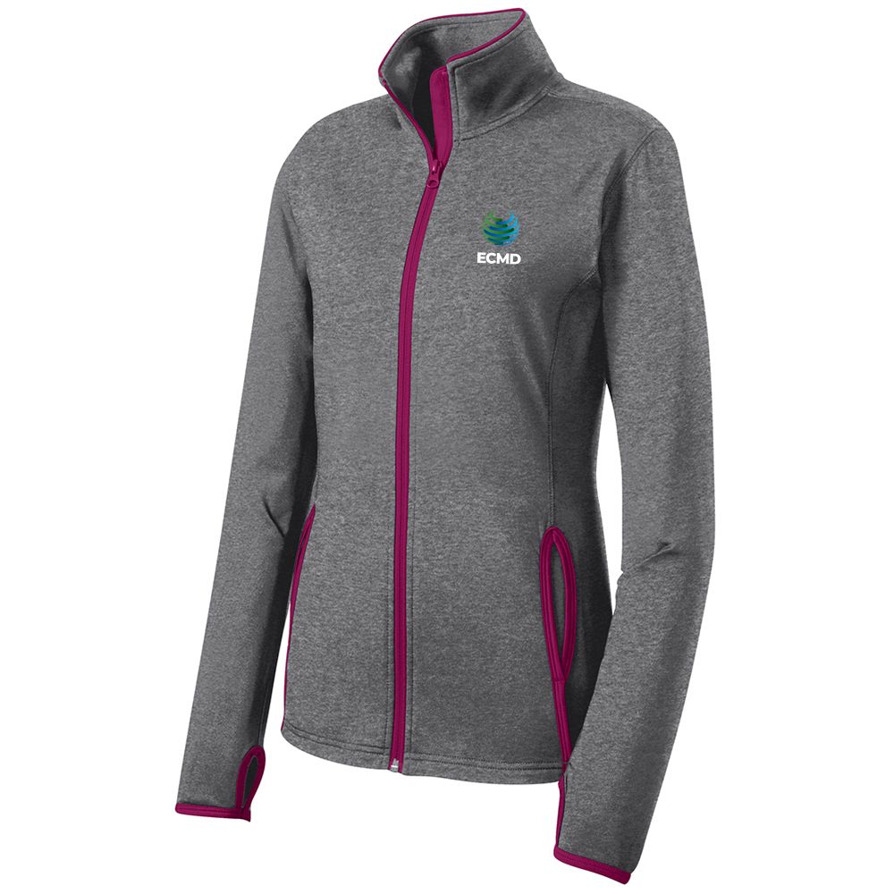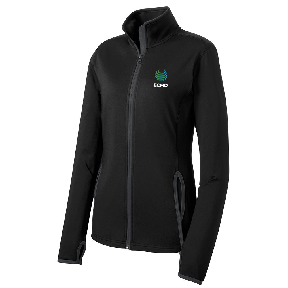 • Keep moving in this moisture-wicking, soft-brushed jacket that's flexible and features hits of contrast color throughout. • 6.8-ounce, 90/10 poly/spandex jersey • Cadet collar with contrast piping • Tag-free label • Taped neck • Contrast reverse coil zipper • Set-in sleeves • Contrast cuff binding • Thumbholes to keep hands warm • Contrast trim at front pockets and thumbholes